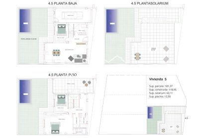 Lujoso complejo de obra nueva de 5 viviendas (3 adosados y 2 villas) con piscina privada, garaje cerrado, patio interior, solarium con cocina de verano y preinstalación para carga de vehículos eléctricos.