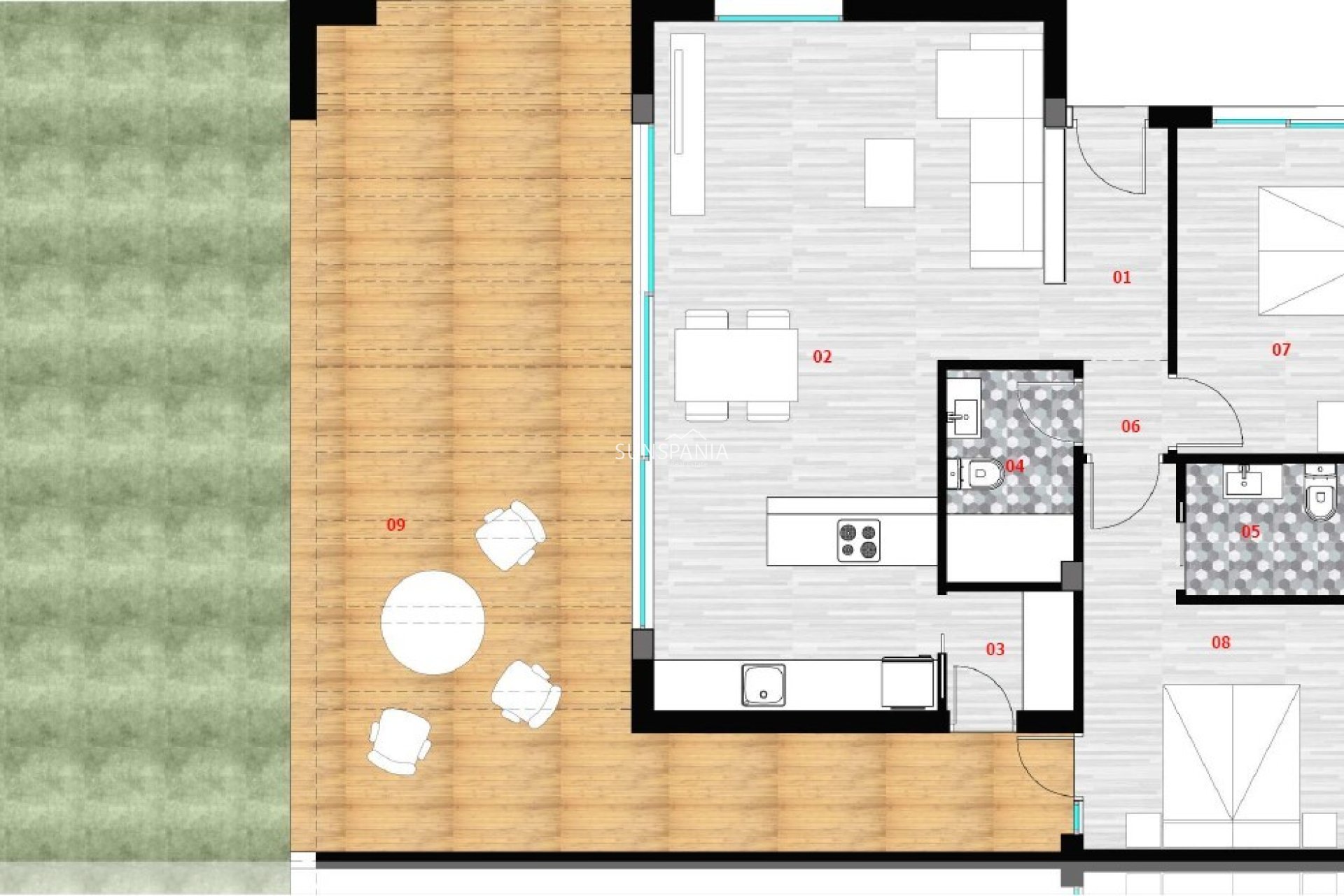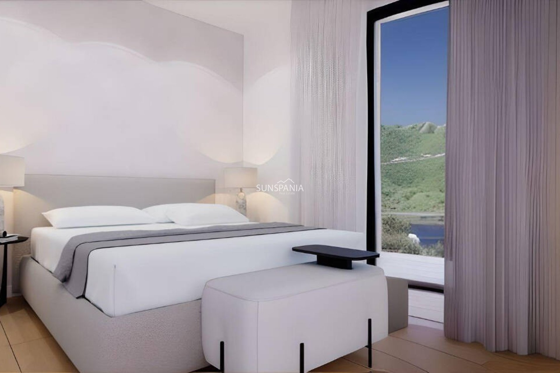 Esta apartamento de 117.62m2 habitables tiene 2 dormitorios, una cocina abierta con un salón/comedor con vistas a la gran terraza de 46.47m2 y sus vistas al campo de golf y las montañas. También tiene un lavadero, 2 baños, una plaza de garaje y un trastero subterráneos incluidos en el precio. Dependiendo de la etapa de construcción, también es posible personalizar los acabados de la propiedad.