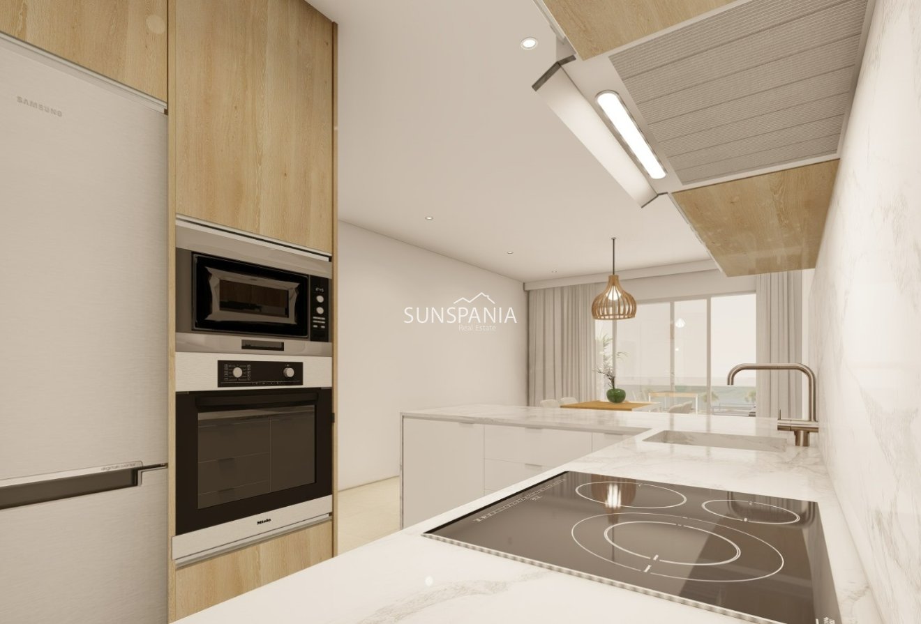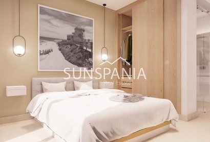 Nuestros áticos cuentan con amplias terrazas, solárium con jacuzzi privado, pérgola de diseño, césped artificial, cocina de verano y magníficas vistas a las zonas comunes y al mar.